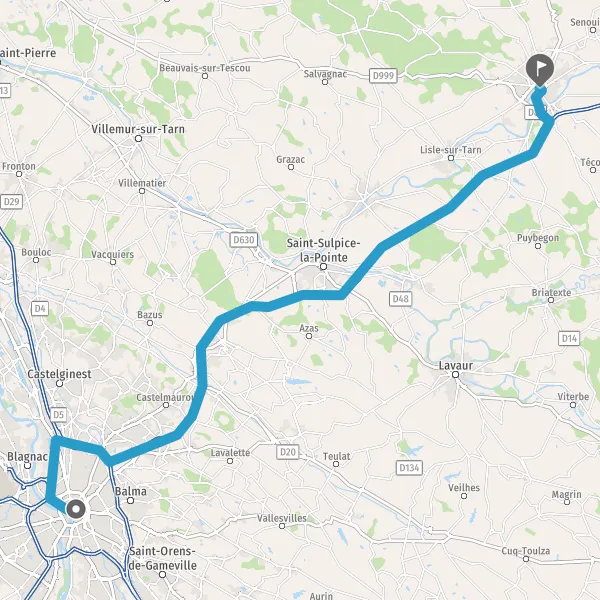 Prendre à droite et rejoindre D87 (Route de Lavaur). Continuer sur 1,8 kilomètre
