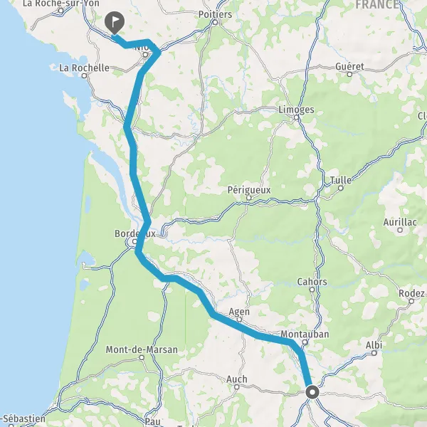 Prendre à droite et rejoindre A62. Continuer sur 33 kilomètres