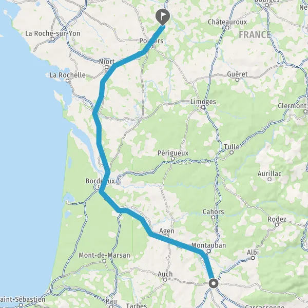 Prendre à droite et rejoindre A62. Continuer sur 33 kilomètres