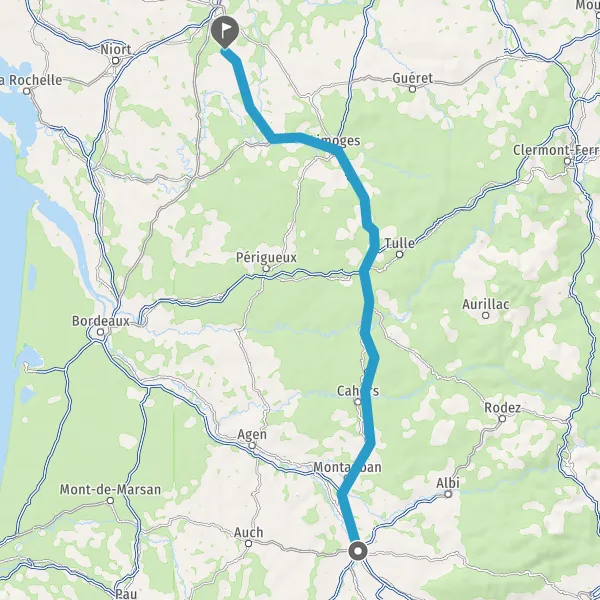 Prendre à droite et rejoindre A62. Continuer sur 33 kilomètres