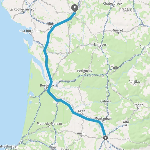Prendre à droite et rejoindre A62. Continuer sur 33 kilomètres