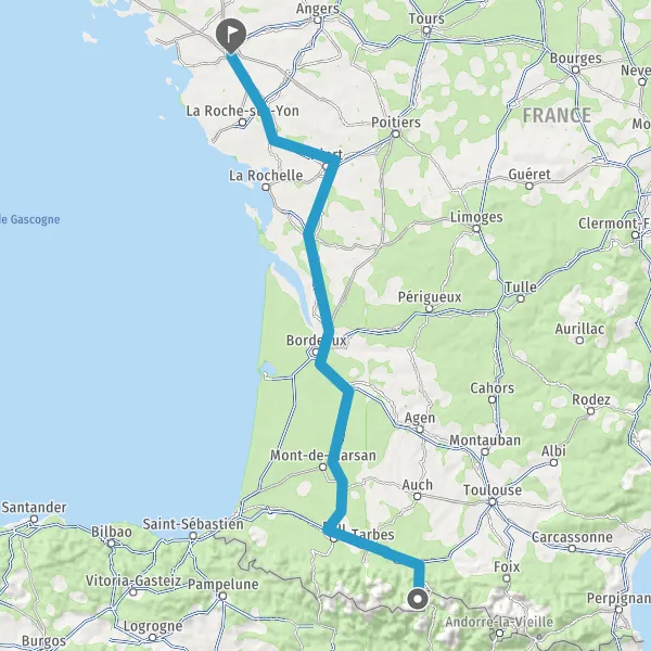 Prendre à droite et rejoindre A65. Continuer sur 150 kilomètres