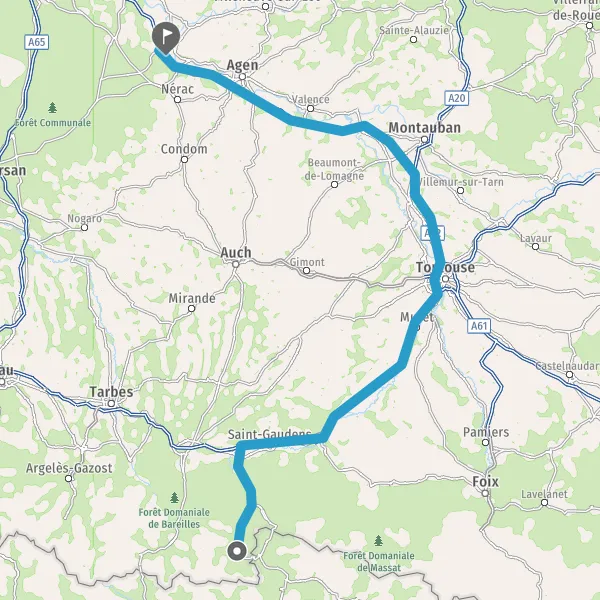 Prendre à droite et rejoindre A62. Continuer sur 33 kilomètres