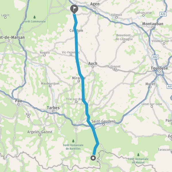 A64ToulouseFoixTarbes-LourdesVilleneuve-de-RivièreBoulogne-sur-GesseSaint-GaudensLannemezan