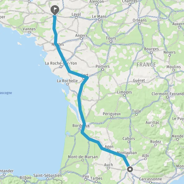 Prendre à droite et rejoindre A83. Continuer sur 150 kilomètres