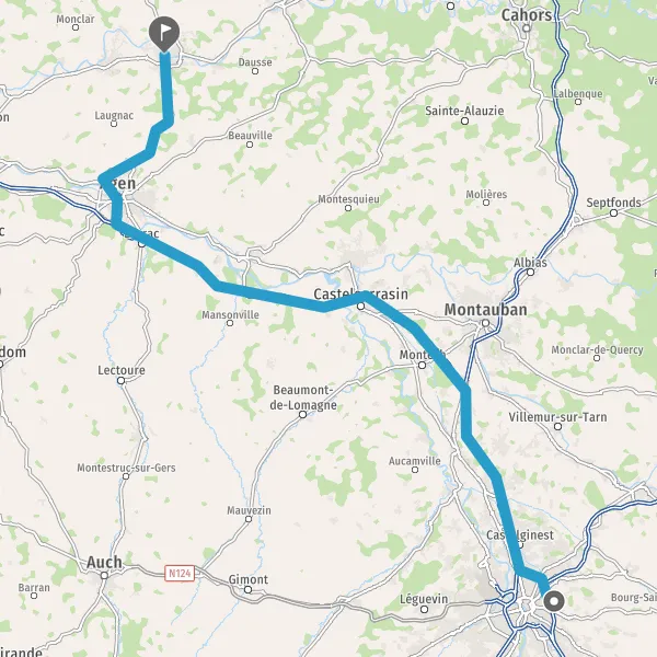 Prendre à droite et rejoindre D931 (Route de Condom). Continuer sur 350 mètres
