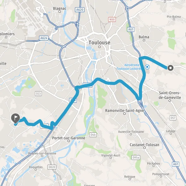 Prendre à droite et rejoindre A620 E80. Continuer sur 7 kilomètres
