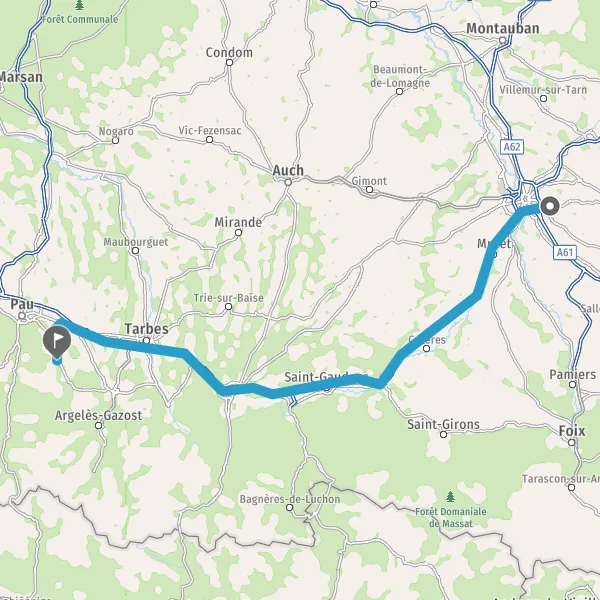 Prendre à droite et rejoindre A64 E80. Continuer sur 1,9 kilomètre