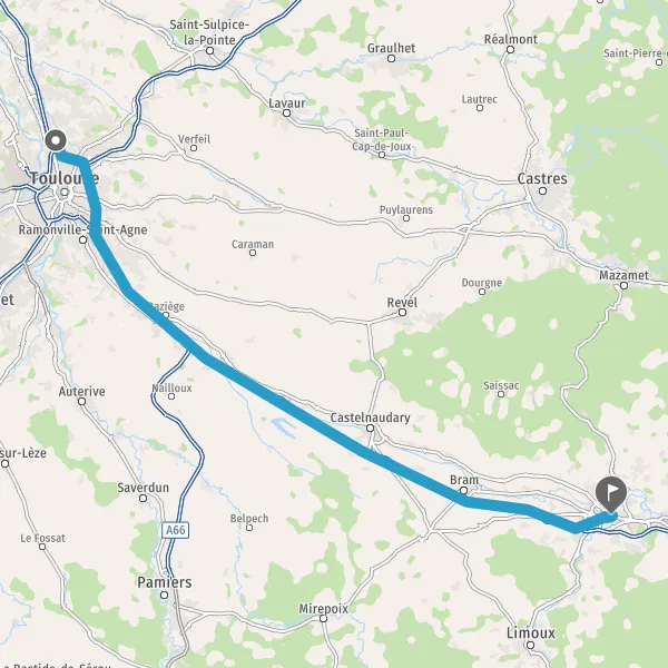 Prendre à gauche et rejoindre A61. Continuer sur 20 kilomètres
