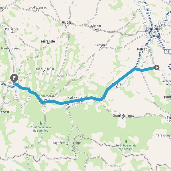 Prendre à droite et rejoindre A64 E80. Continuer sur 112 kilomètres