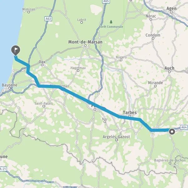 Prendre à gauche et rejoindre A645. Continuer sur 157 kilomètres