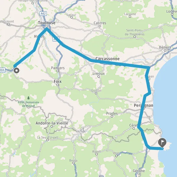 Prendre à droite et rejoindre A64 E80. Continuer sur 57 kilomètres