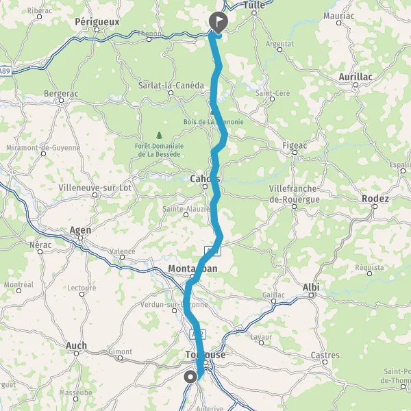 Prendre à droite et rejoindre A62. Continuer sur 33 kilomètres