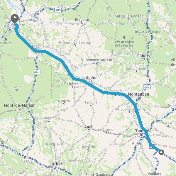 Avec le mode voiture, vous pouvez configurer vos options (type de véhicule, autoroute ou non, péage ou non, distance la plus courte), tout en ayant accès aux infos de circulation grâce à notre service d'info-trafic en temps réel. Ainsi faites des économies sur le coût ou la durée de votre voyage, en trouvant le trajet Villefranche-de-Lauragais Bordeaux adapté à vos besoins.