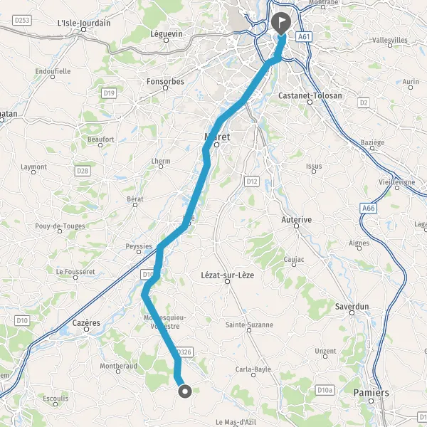 Au rond-point, prendre la 1ère sortie sur D627 (Route de Toulouse) et continuer sur 4,3 kilomètres