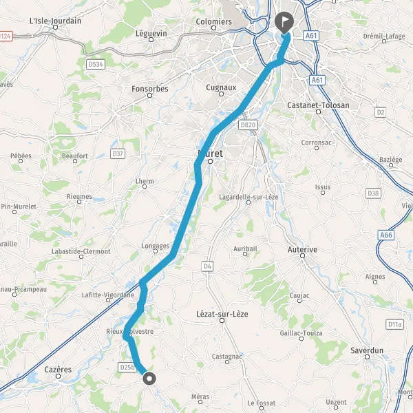 Au rond-point, prendre la 1ère sortie sur D627 (Route de Toulouse) et continuer sur 4,3 kilomètres