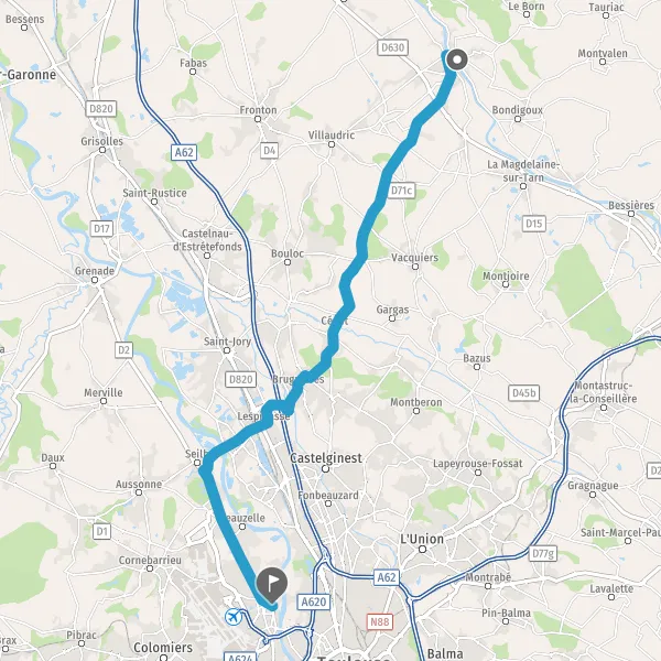 Au rond-point, prendre la 2ème sortie sur D63 (Route de Seilh) et continuer sur 1,7 kilomètre