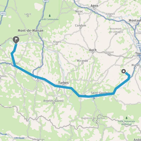 Prendre à droite et rejoindre A64 E80. Continuer sur 186 kilomètres