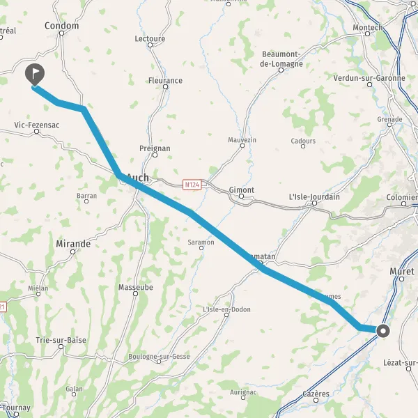 Au rond-point, prendre la 1ère sortie sur D930 (Route de Condom) et continuer sur 11 kilomètres