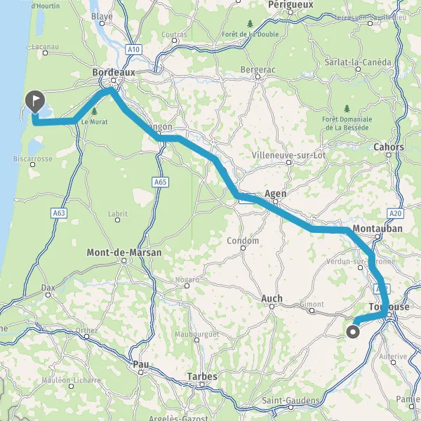 Prendre à droite et rejoindre A62. Continuer sur 33 kilomètres