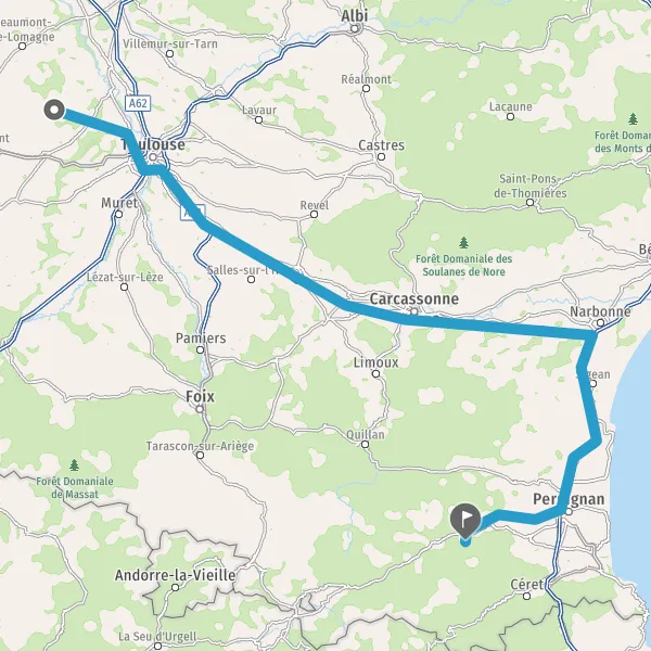 Prendre à droite et rejoindre A9 E15. Continuer sur 47 kilomètres