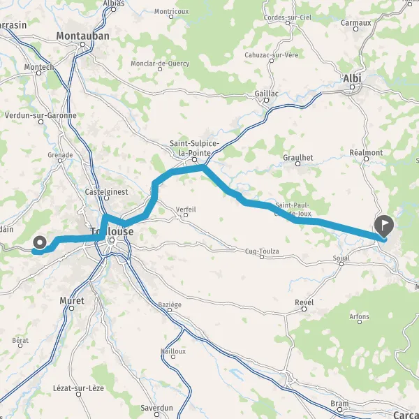 Tourner à gauche sur D112 (Avenue de Toulouse) et continuer sur 6,5 kilomètres