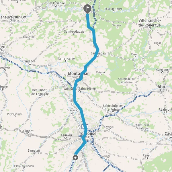 Prendre à droite et rejoindre A62. Continuer sur 33 kilomètres
