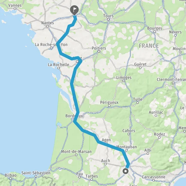 Prendre à droite et rejoindre A62. Continuer sur 33 kilomètres