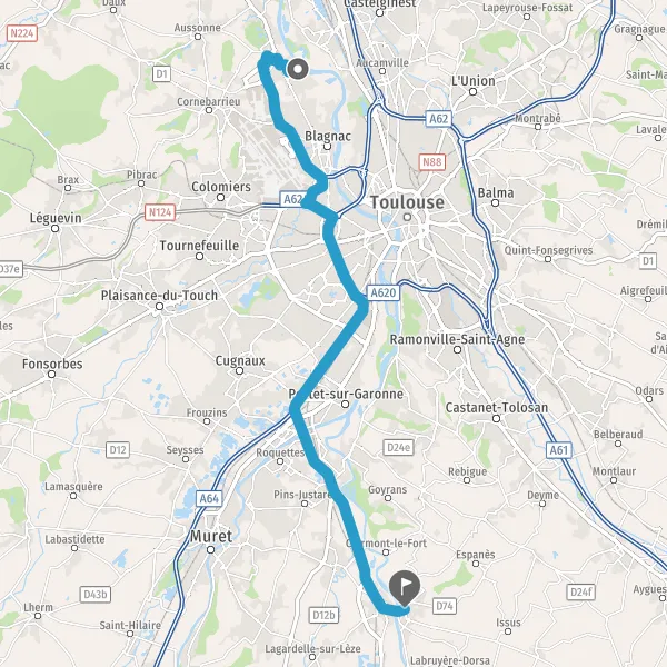 Prendre à droite et rejoindre A620. Continuer sur 4,4 kilomètres