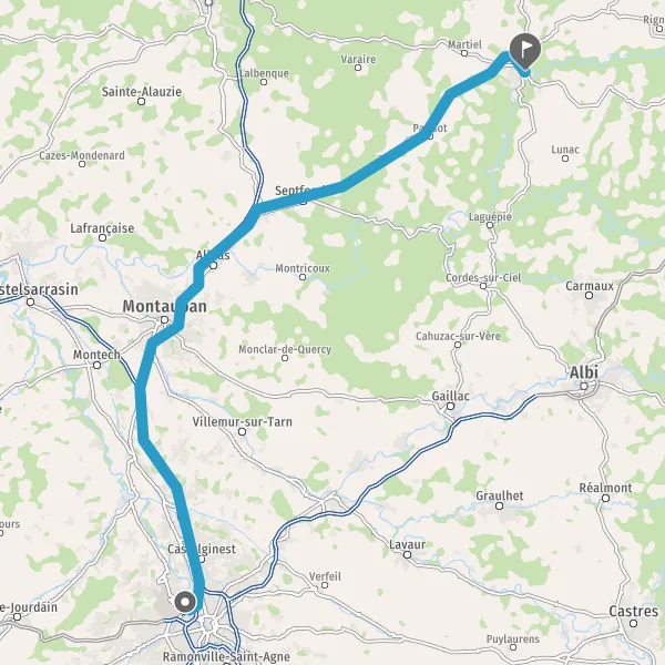Au rond-point, prendre la 1ère sortie sur D926 (Route de Montauban) et continuer sur 2,4 kilomètres