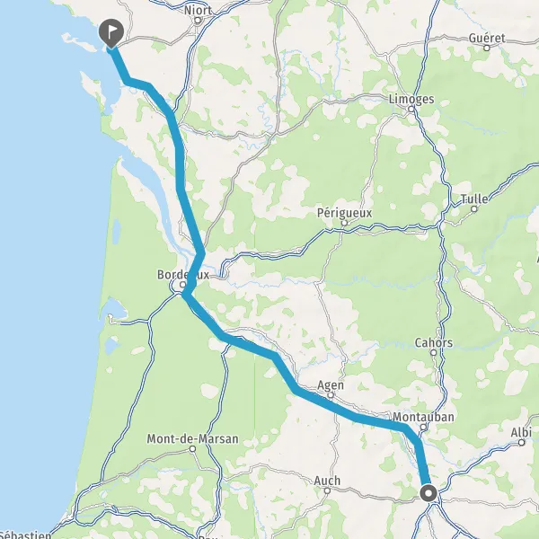 Prendre à droite et rejoindre A62. Continuer sur 33 kilomètres