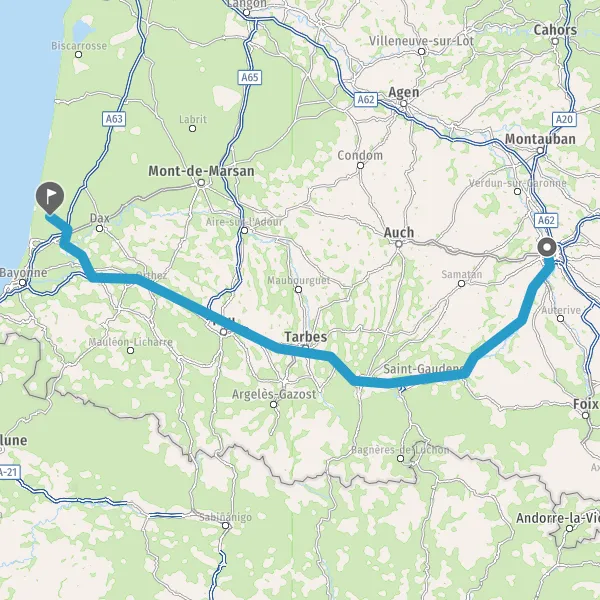 Prendre à droite et rejoindre A621. Continuer sur 1,5 kilomètre