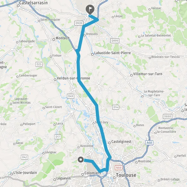 Au rond-point, prendre la 2ème sortie sur D1 (Route de Toulouse) et continuer sur 1,1 kilomètre