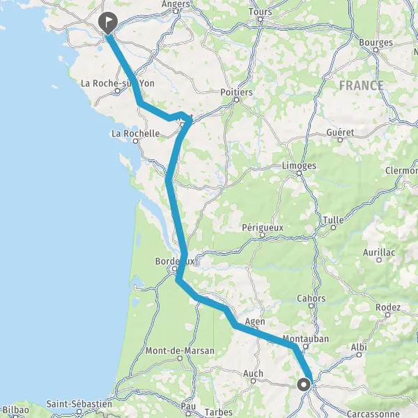 Prendre à droite et rejoindre A62. Continuer sur 33 kilomètres