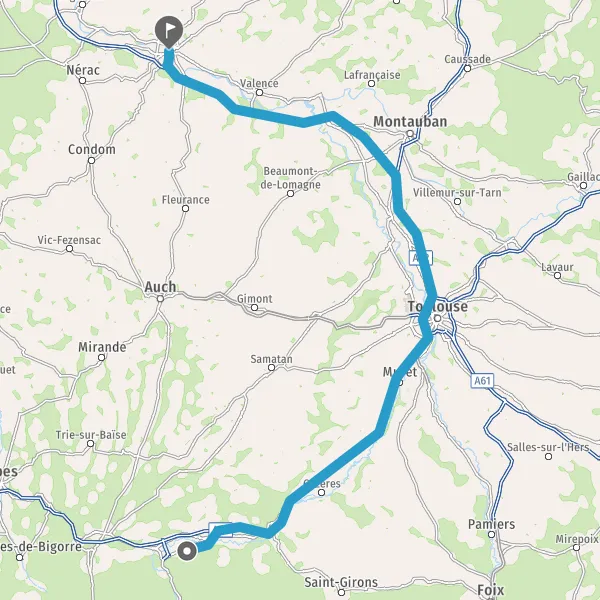 Prendre à droite et rejoindre A62. Continuer sur 33 kilomètres