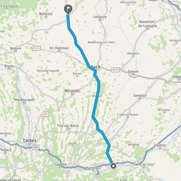 Au rond-point, prendre la 1ère sortie sur N21 (Route de Tarbes) et continuer sur 2,2 kilomètres