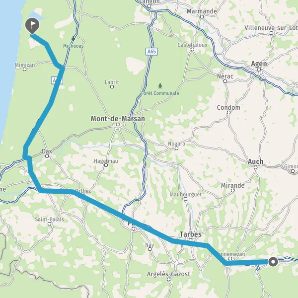 Prendre à droite et rejoindre A63 E5 E70. Continuer sur 63 kilomètres