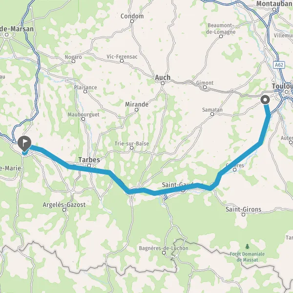 Prendre à droite et rejoindre A64 E80. Continuer sur 169 kilomètres