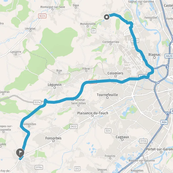 Au rond-point, prendre la 2ème sortie sur D65 (Route de Pibrac) et continuer sur 1,2 kilomètre
