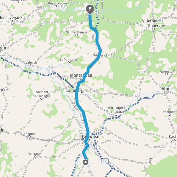 Prendre à droite et rejoindre A62. Continuer sur 33 kilomètres