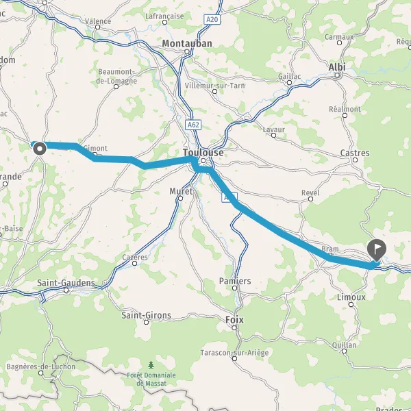 Prendre à droite et rejoindre A620. Continuer sur 4,4 kilomètres