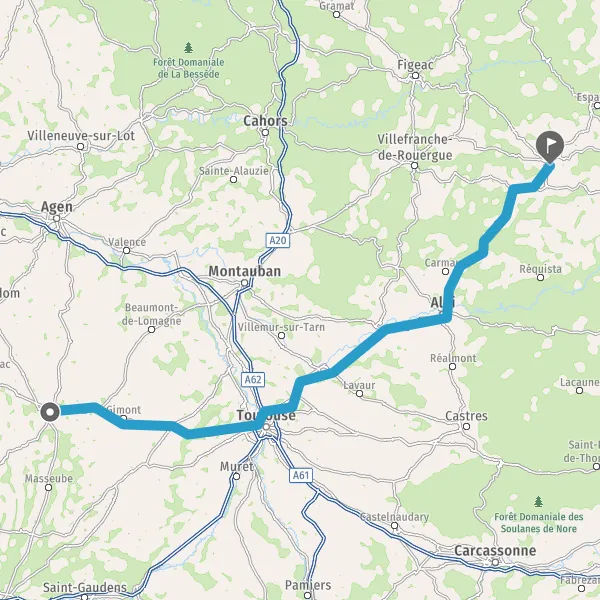 Prendre à gauche et rejoindre A62 E9. Continuer sur 5 kilomètres