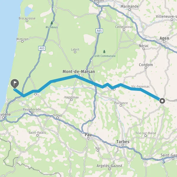 Prendre à droite et rejoindre A63 E5 E70. Continuer sur 1,3 kilomètre
