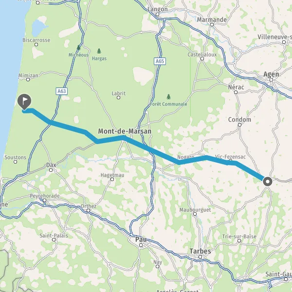 Tourner à droite sur D66 (Rue de Lit et Mixe) et continuer sur 4,3 kilomètres