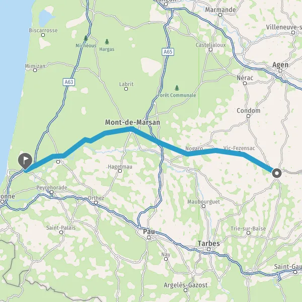 Prendre à droite et rejoindre D824e (Route de Dax). Continuer sur 2,5 kilomètres