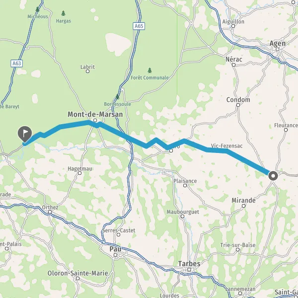 Au rond-point, prendre la 2ème sortie sur D30 (Avenue du Houga) et continuer sur 1,7 kilomètre