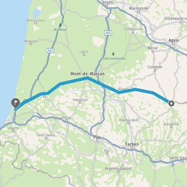 Prendre à droite et rejoindre D824e (Route de Dax). Continuer sur 2,5 kilomètres