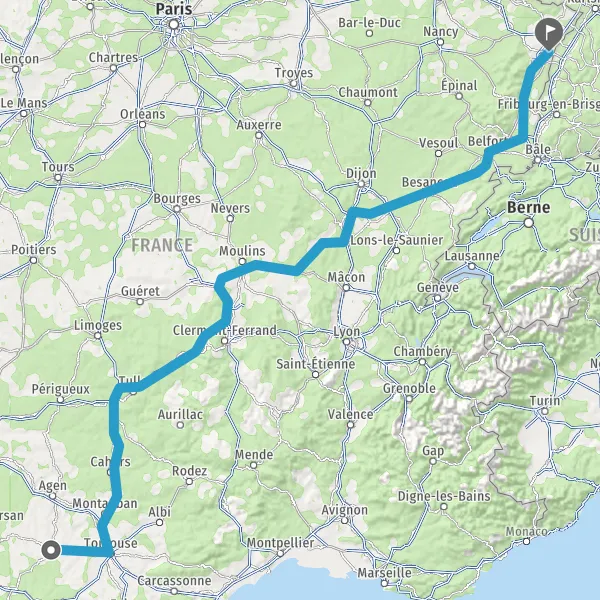 Prendre à droite et rejoindre A36. Continuer sur 225 kilomètres