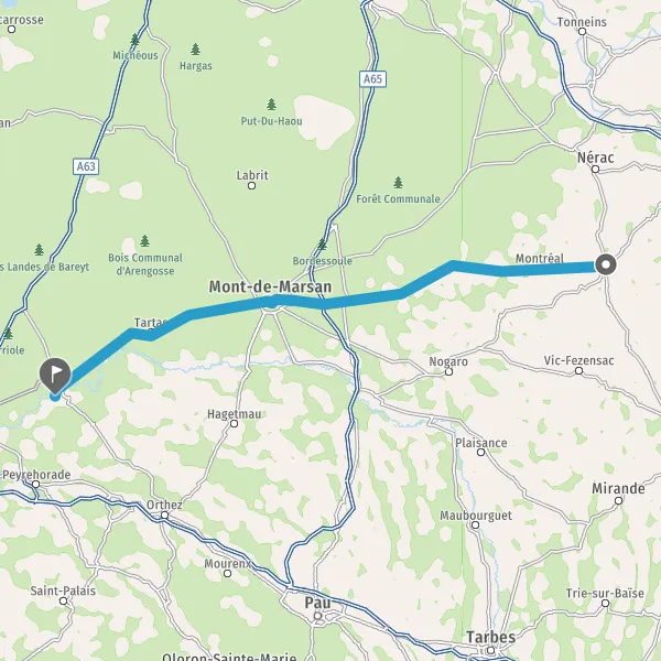 Route de Villeneuve-de-Marsan 54 km