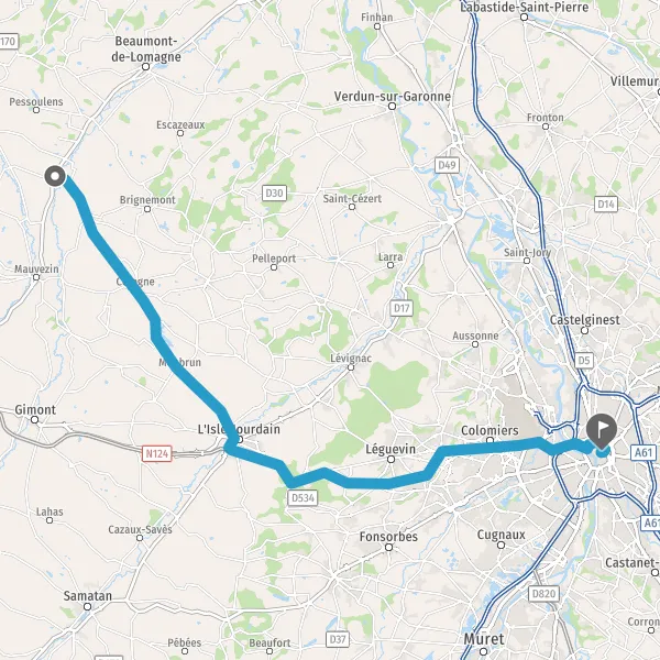 Au rond-point, prendre la 1ère sortie sur D1 (Route de Puyssegur) et continuer sur 11 kilomètres